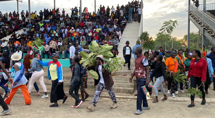 Emotions ran even higher as the Kenya Red Cross attended to several mourners who collapsed while viewing the body. Despite delays caused by crowd control, the public viewing officially began at 9:42 a.m. The master of ceremonies pleaded for calm and decorum as leaders and citizens alike struggled to contain their grief.