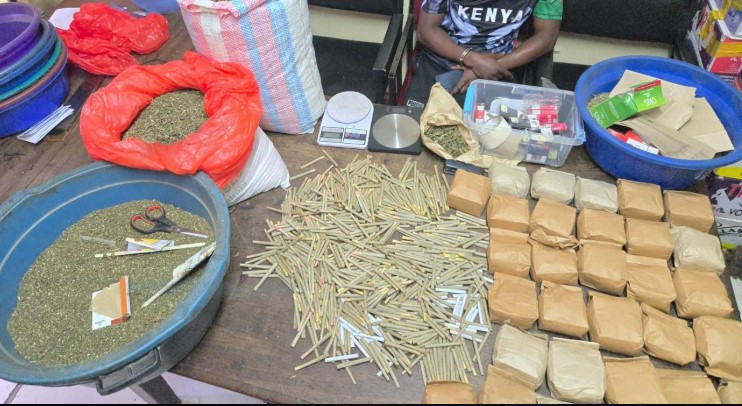 Police officers in Buruburu Sub-County have arrested a man following the discovery of a massive bhang haul in the Umoja 1 Market area, Nairobi. During the operation, officers seized approximately 20 kilograms of unprocessed cannabis along with 3,000 prepared rolls and 33 additional packages of the drug, all retained as exhibits for further investigation.